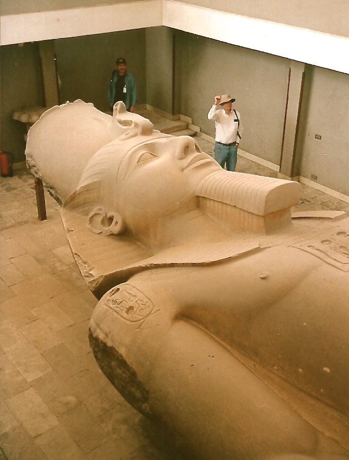 We pass above Deir el-Bahri and look down on Hatshepsut’s temple, which we’ll visit later today. The temple is in the midst of extensive reconstruction. We can see some behind-the-scenes staging, plus the huge storage areas off to the sides where the blocks are set out in neat rows, waiting to be restored to their proper place.
